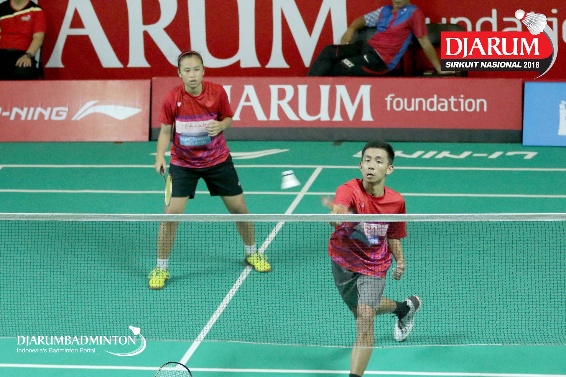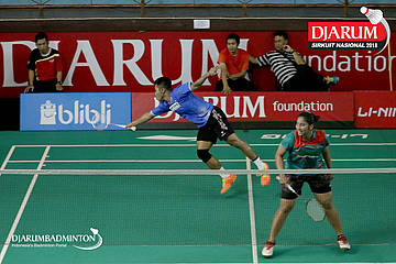 Muliadi Rizka Saputra/Arin Apriyanti (Pratama Badminton Academy, Sby/PB Suryanaga Wima, Sby) berusaha mengembalikan serangan