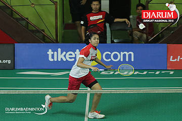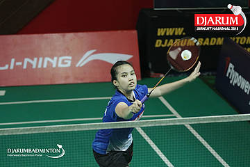 Alifia Intan Nurrokhim (PB Djarum, Kudus) mengembalikan shuttlecock