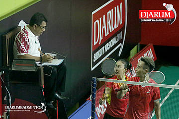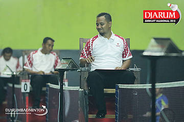 Salah satu umpire yang bertugas pada Djarum Sirkuit Nasional Li Ning Kalimantan Timur Open 2018