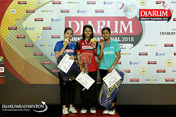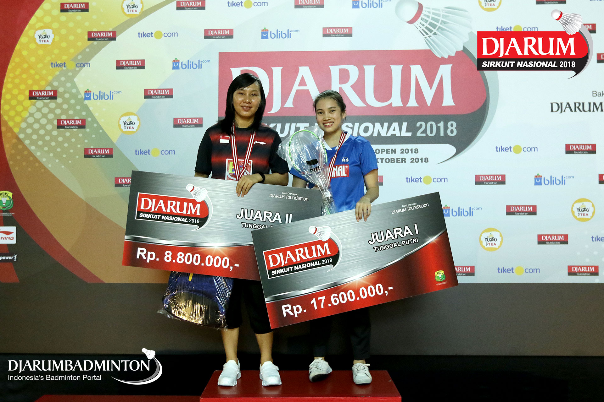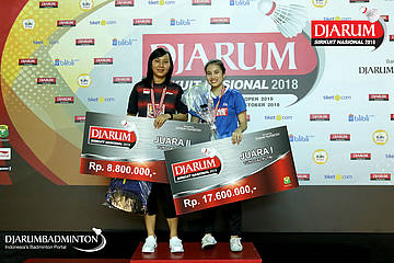 Amalia Cahaya Pratiwi/Putri Andini Wahyuningrum (Mutiara Cardinal, Bandung) menyambut pengembalian