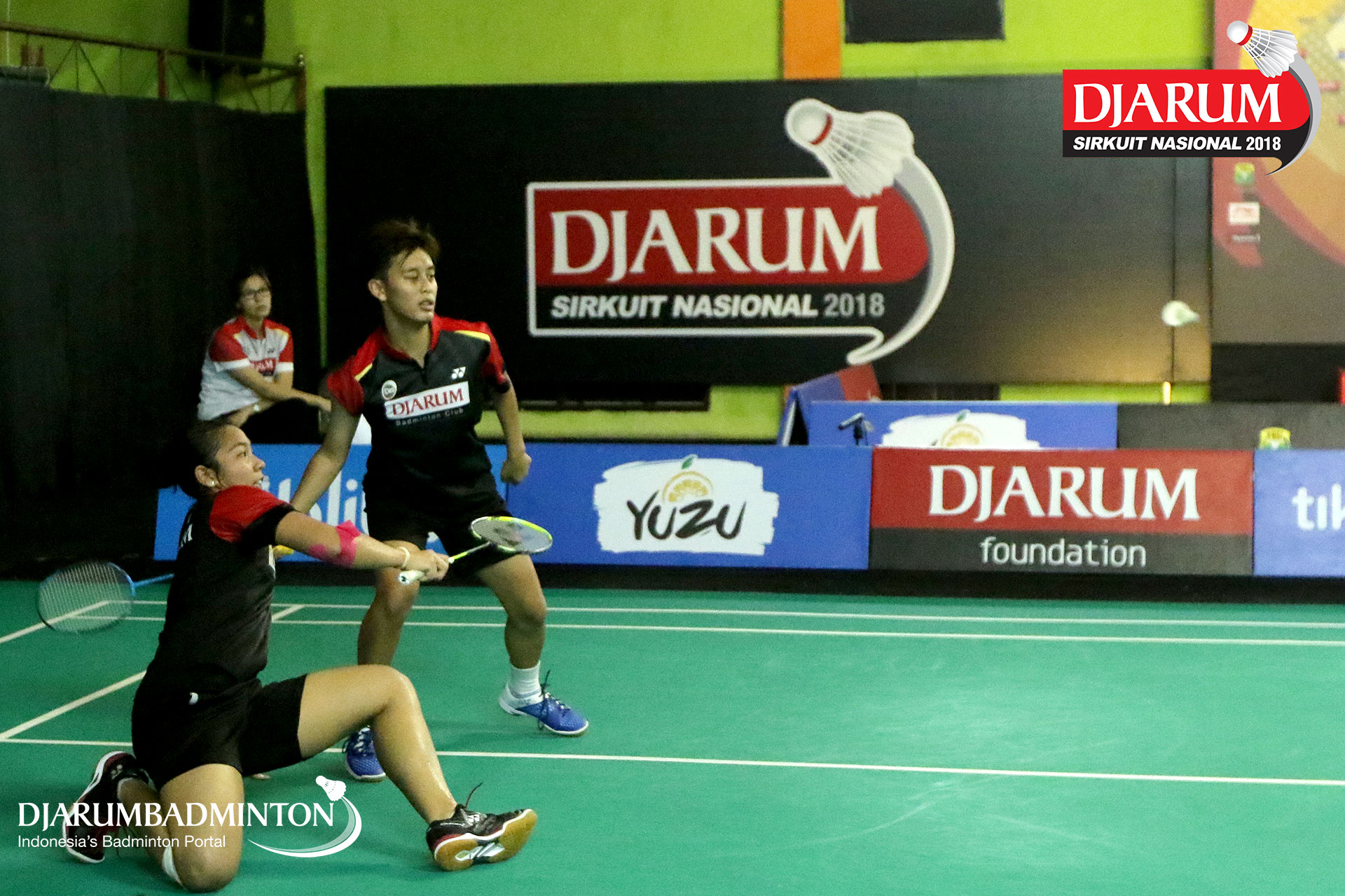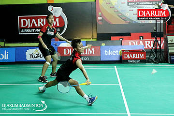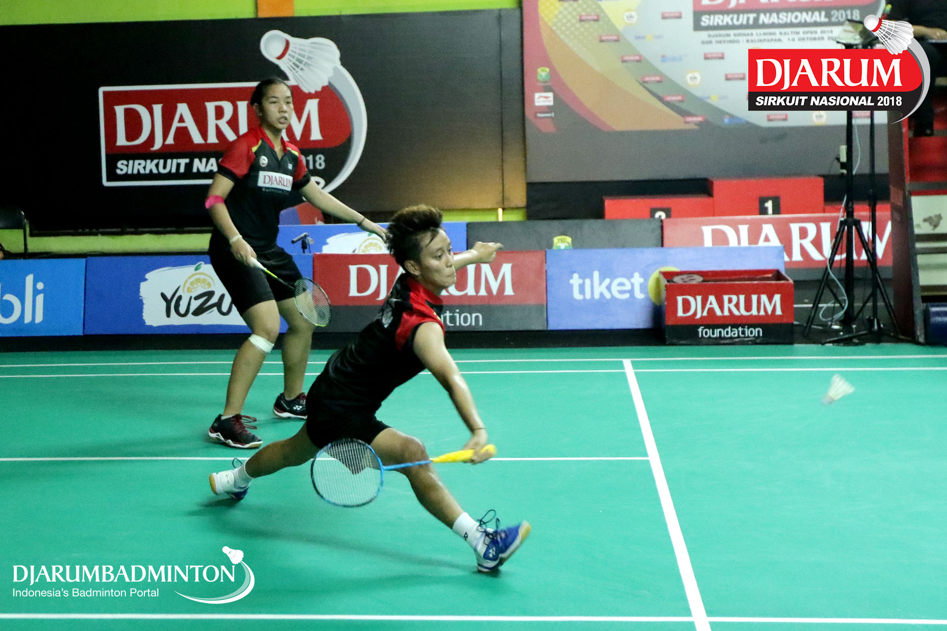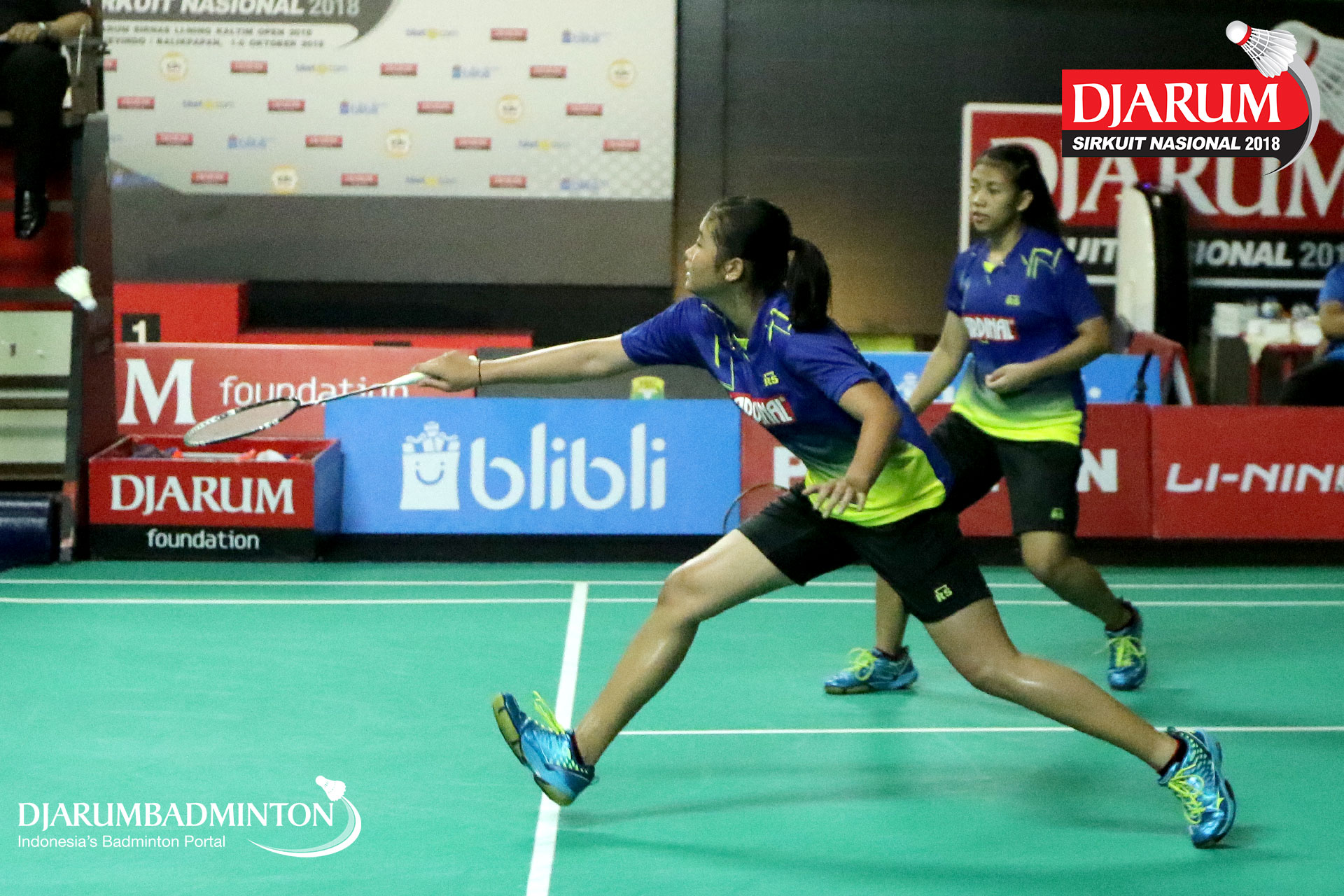 Aldira Rizki Putri/Ayu Gary Luna Maharani (PB Djarum, Kudus) berusaha mengembalikan serangan
