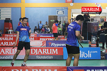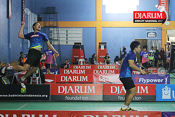 Althof Baariq/Reinard Dhanriano (Mutiara Cardinal Bandung) Bersiap Melakukan Smash