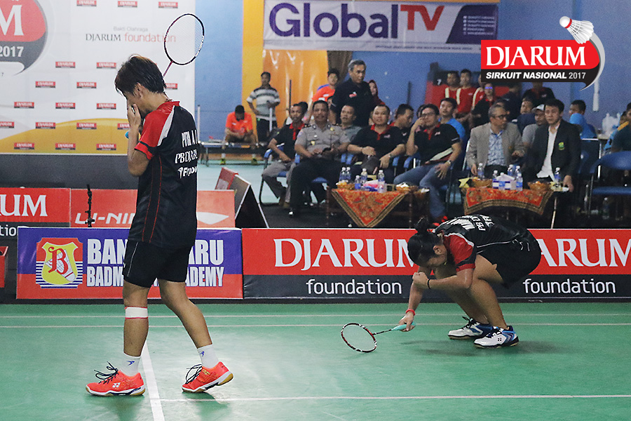 Ekspresi Aldira Rizki Putri/Ayu Gary Luna Maharani (Djarum Kudus)
