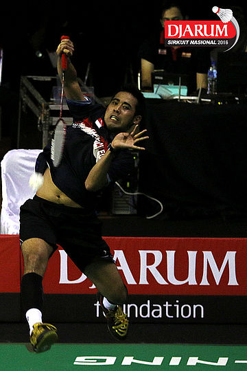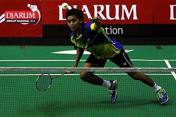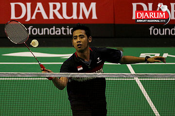 Isna Sakti (Suryabaja) mengembalikan shuttlecock