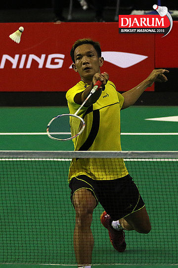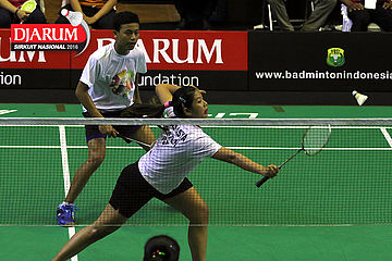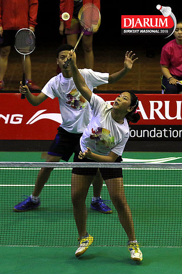 Leo Rolly/Metya Inayah (Djarum Kudus) mengembalikan shuttlecock