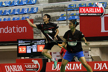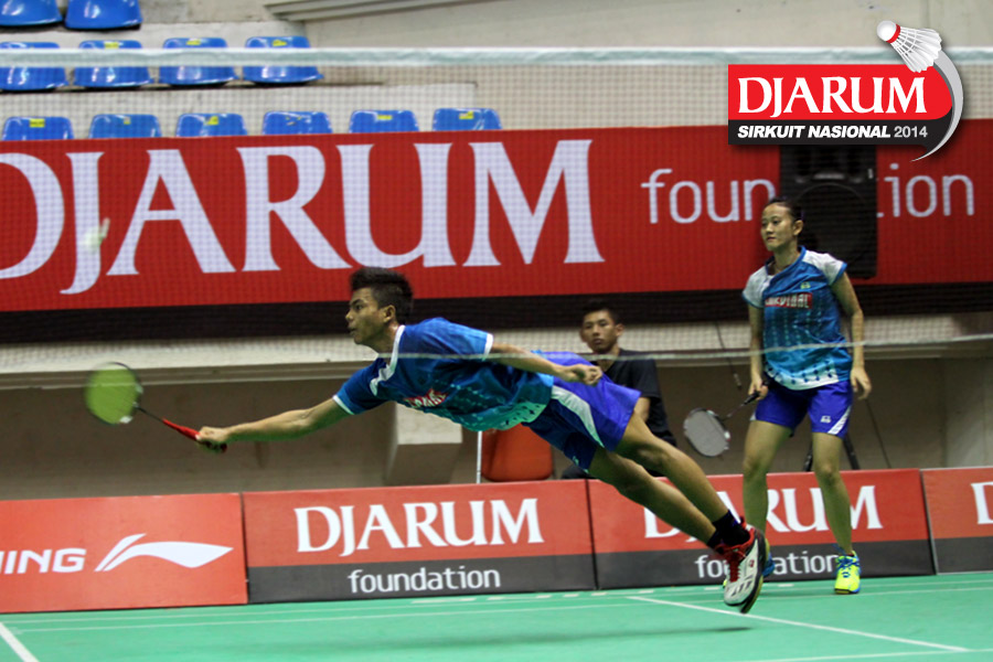 Aji Firmansyah/Bunga Fitriani (MUTIARA CARDINAL) bekerja keras menahan serangan Yahya Adi Kumara/Cynthia Shara A (DJARUM KUDUS)