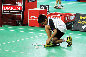 Nijynsco Kaleb (Candra Wijaya) saat mengikat tali sepatu