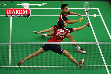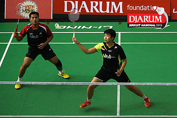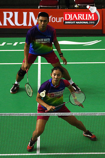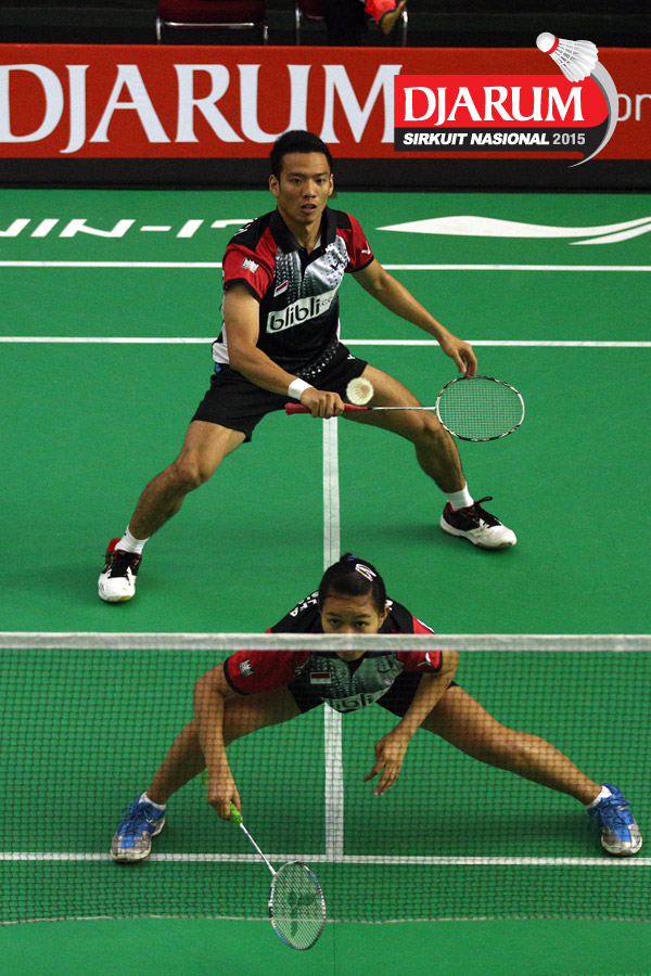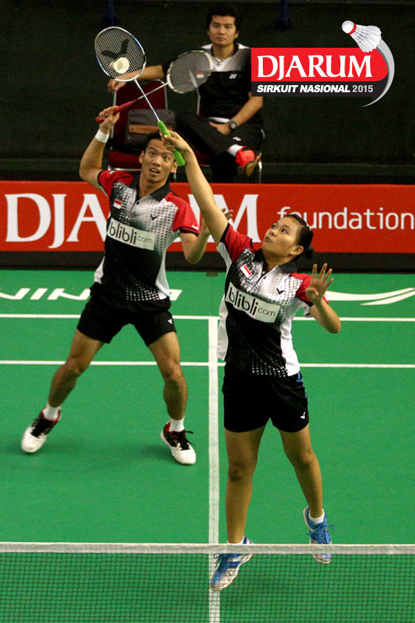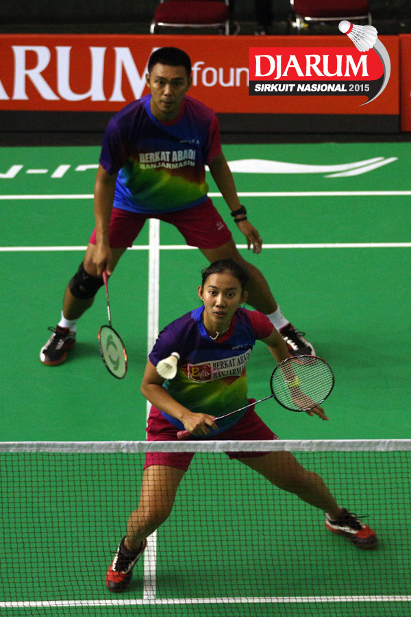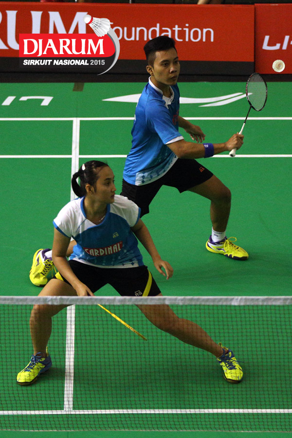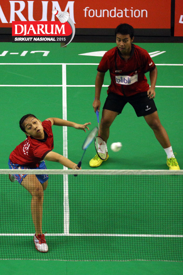 Lukhi Apri/Zakia Ulfa (Pelatnas) berhasil menghadang pengembalian dari Akbar Bintang/Ristya Ayu (Djarum Kudus).