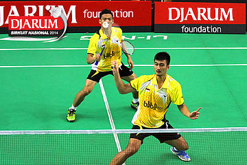 Siswanto/Siswanto (Victor BSD) bersiap menyambut pengembalian dari Duthree Gigih/Steven (Candra Wijaya/Pengcab Kab. Bogor)