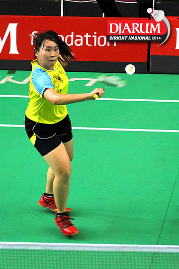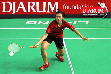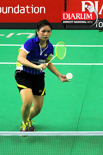 Mery Merina (Permata PBSI Siak) bersiap menyambut pengembalian dari Brigita Maria (JR Enkei)