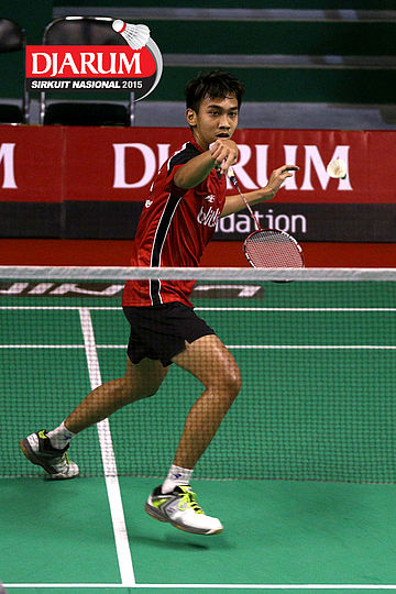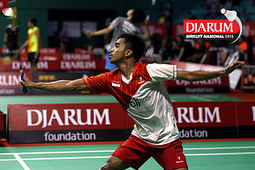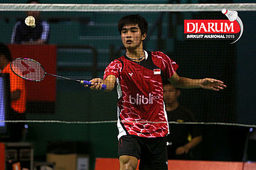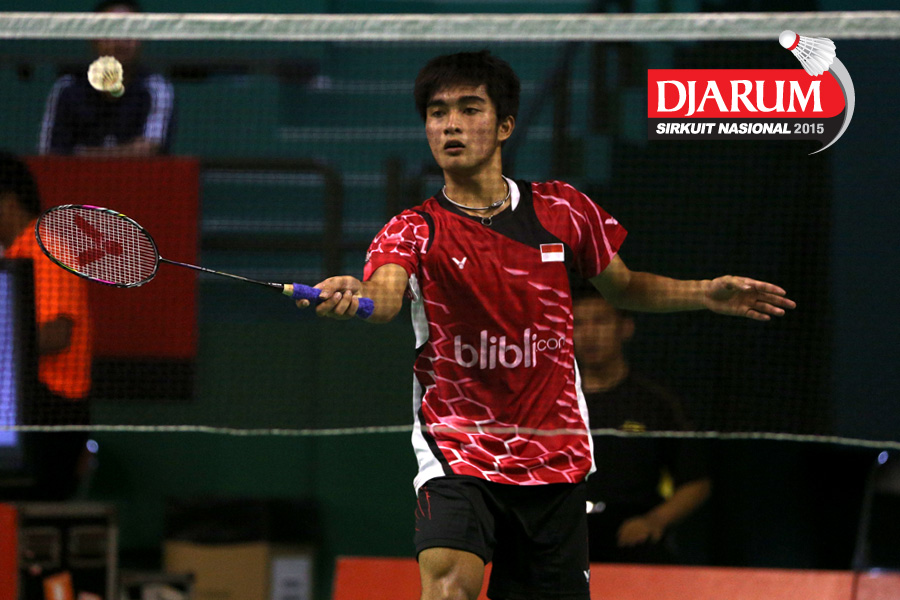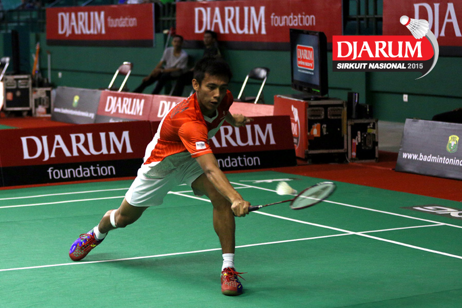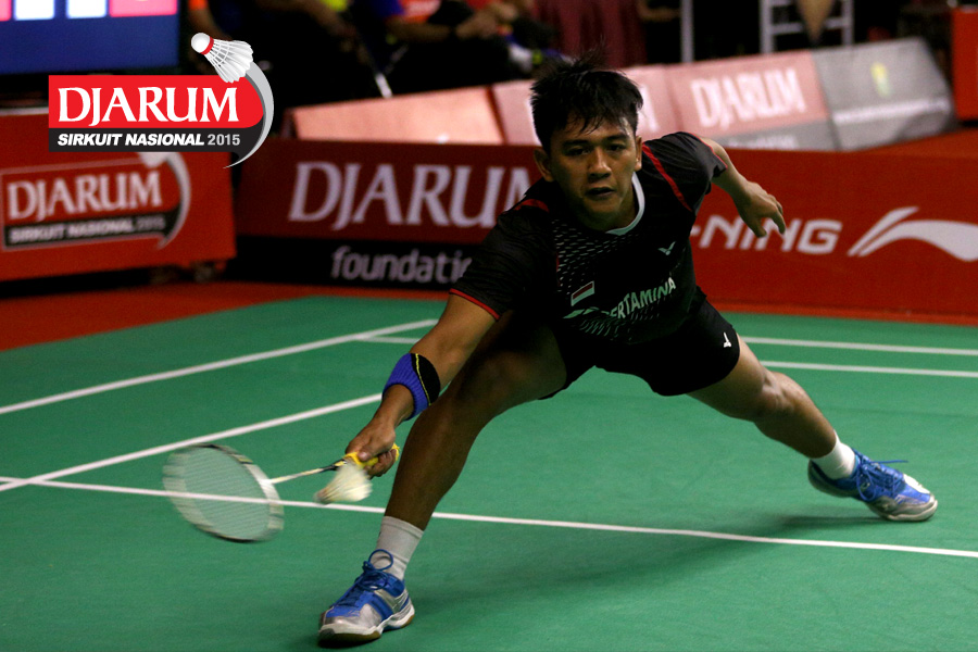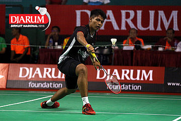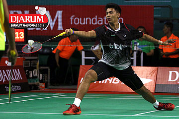 Panji Ahmad (Pelatnas) menyambut shuttlecock.