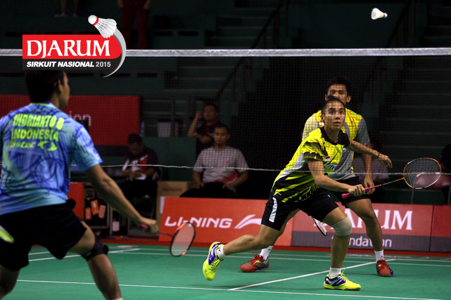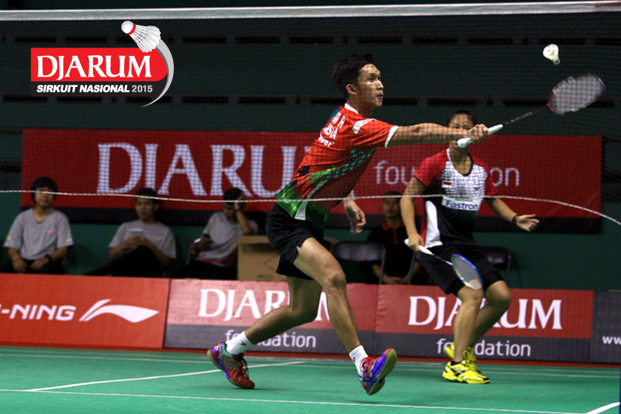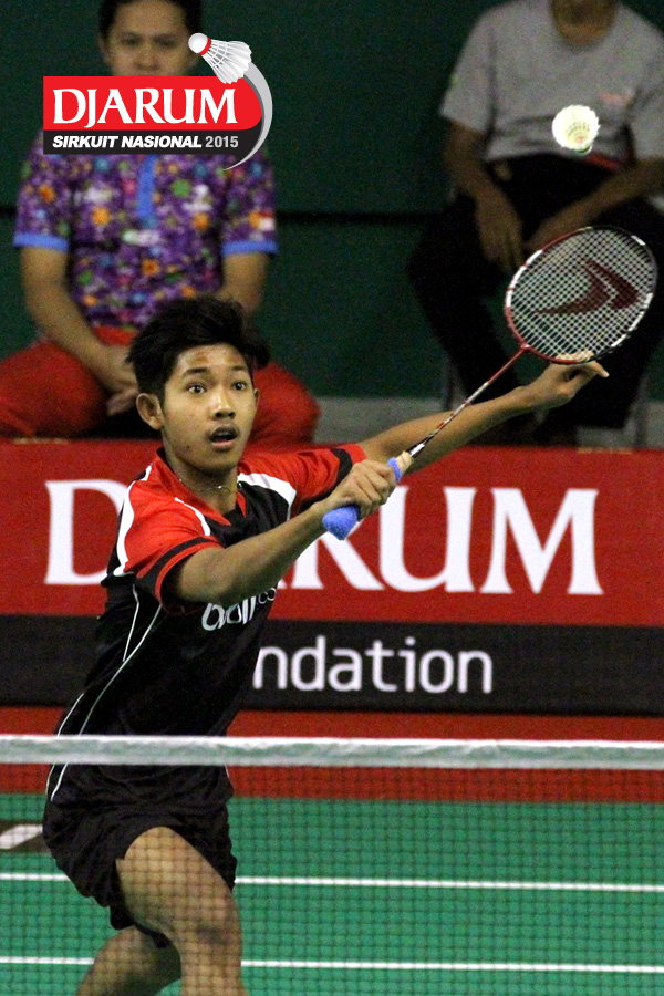 Bagas Kristianto (Djarum Kudus) bersiap menyambar pengembalian.