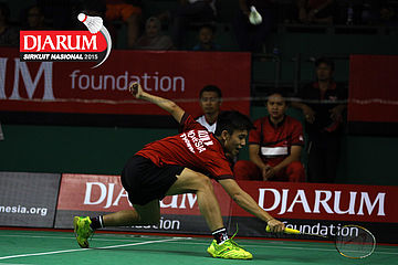Krinsa Adi (Pelatnas) bersiap menyambar pengembalian.