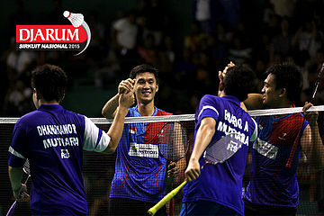 Selebrasi Afiat Yuris/Yohanes Rendy (Pertamina Fastron).
