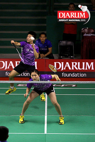 Dian Fitriani/Nadya Melati (Pertamina Fastron) saling berkoordinasi.