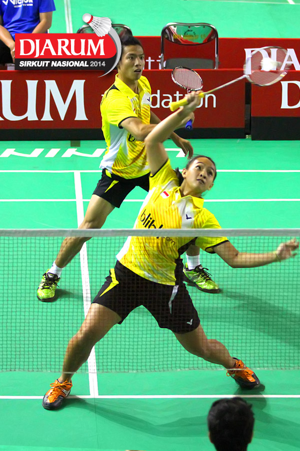 Kenas Adi/Jenna Gozali (PB Djarum) berhasil menghadang serangan yang dilepaskan Arya Maulana/Maretha Dea (Pelatnas)