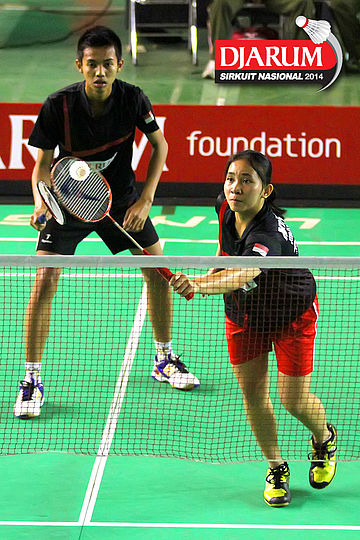 Trikus Haryanto/Vita Marissa (Tjakrindo Master/PB Djarum) menyambut pengembalian dari Hafiz Faisal/Shela Devi (Pelatnas)
