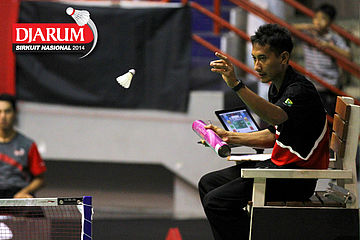 Salah satu umpire saat memberikan pergantian shuttlecock.