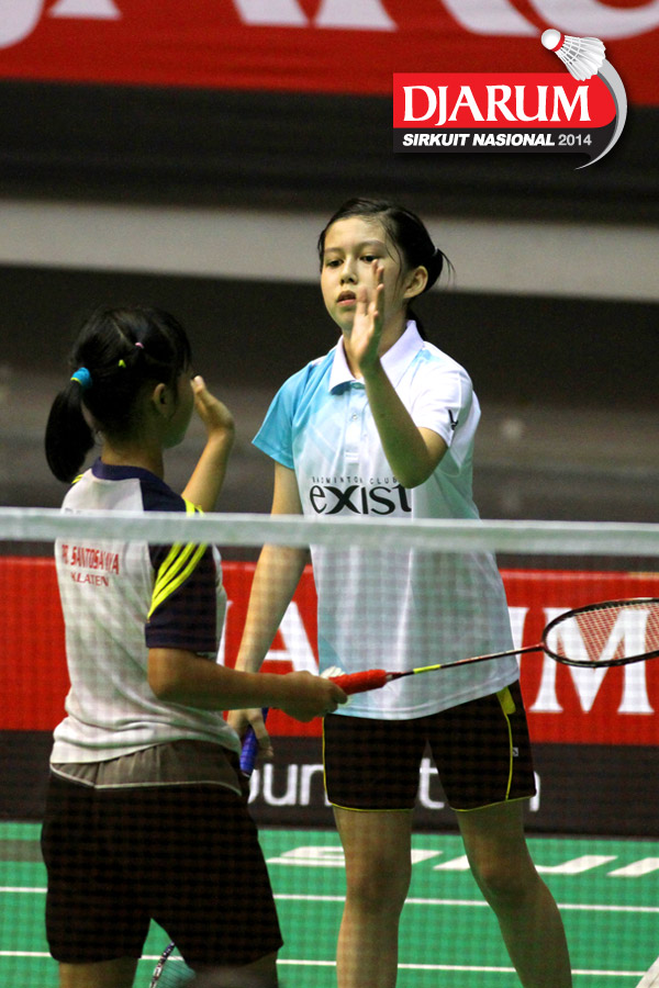 Kekompakan Diana Fitri Milenia / Ivanna Celia Handoyo (Santoso Jaya/Exist) di lapangan pertandingan.