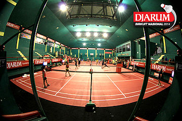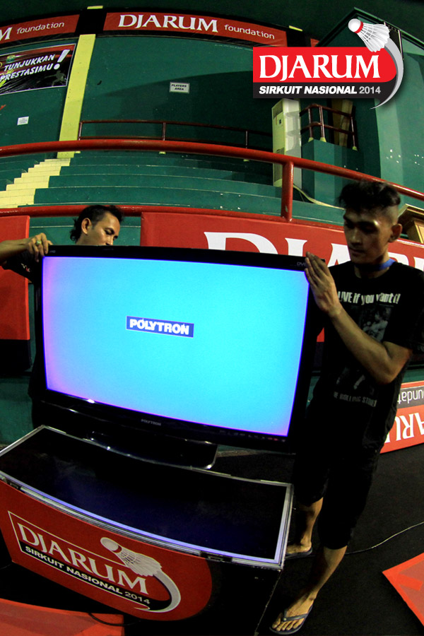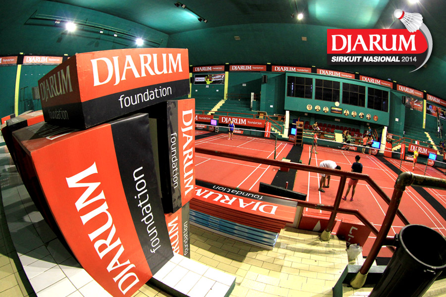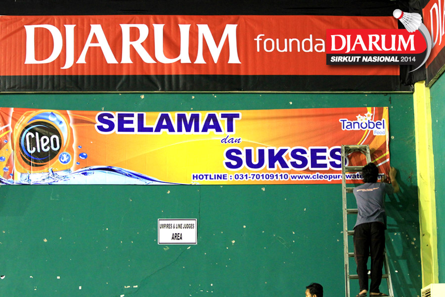 Pernak-pernik Djarum Sirkuit Nasional Li-Ning Open Jawa Timur Open 2014 sudah mulai menghiasi GOR Sudirman, Surabaya