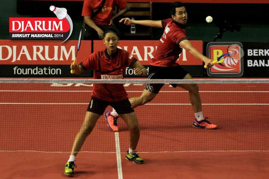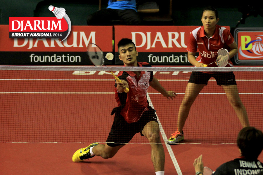 Arya Maulana/Della Augustia (Djarum Kudus) berhasil menghadang serangan yang dilepaskan Rizky Kurniawan/Natalia Poluakan (Doremi Group)