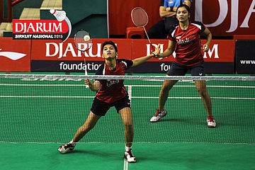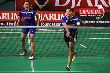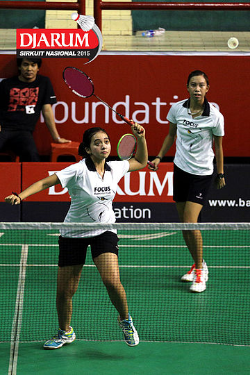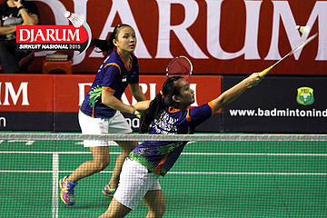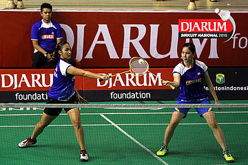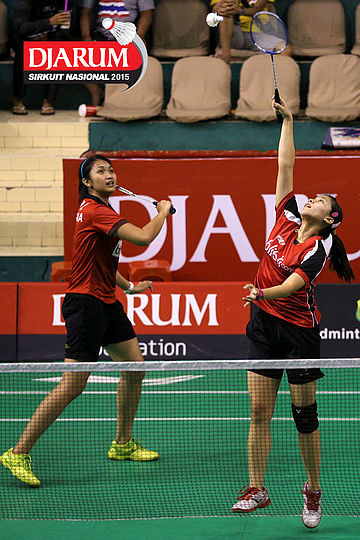 Ririn Amelia/Ristya Ayu (Djarum Kudus) mengembalikan shuttlecock