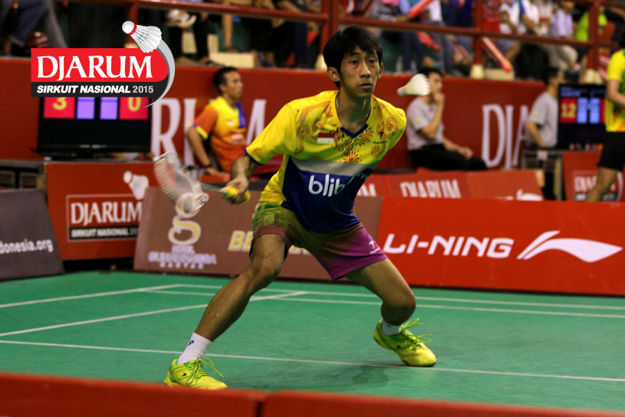 Wisnu Yuli (Djarum Kudus) bersiap menghadang serangan
