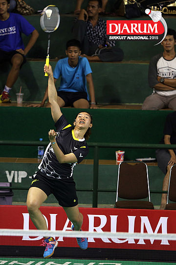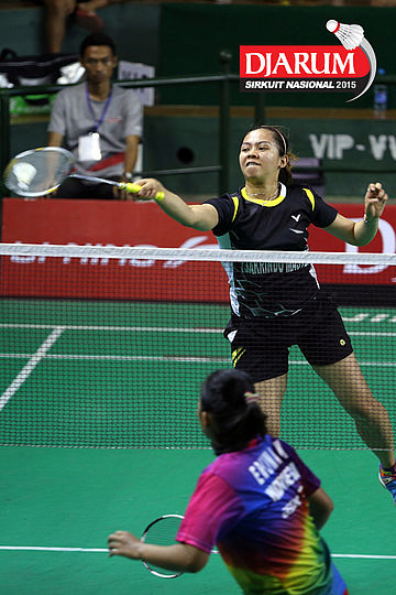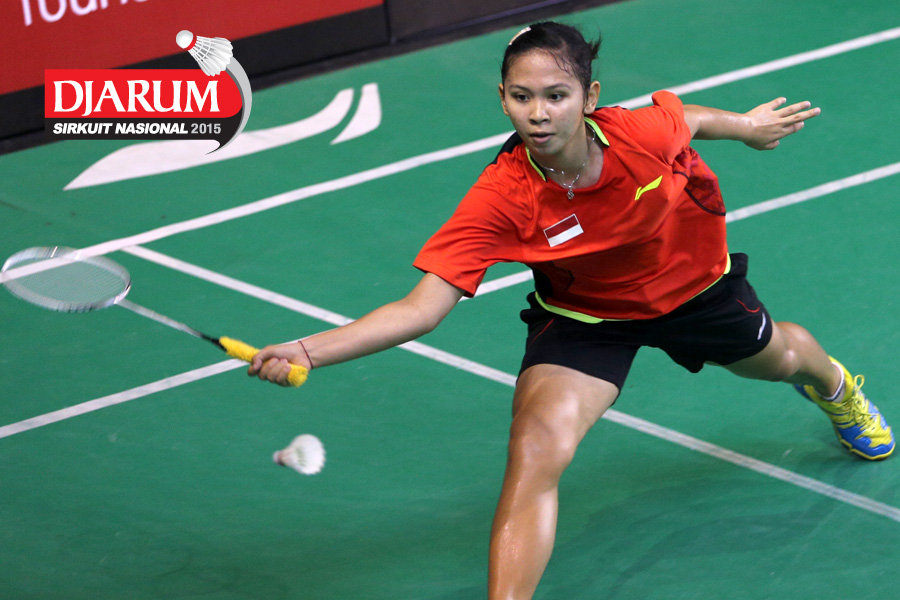 Febby Angguni (Tjakrindo Masters) melepaskan serangan.