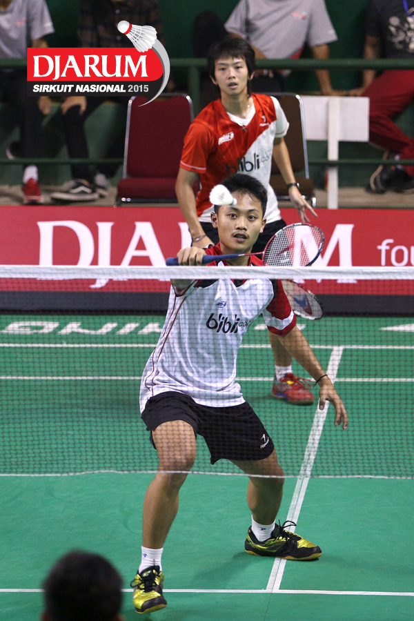 Akbar Bintang/Jenna Gozali (Djarum Kudus) menyambut pengembalian.
