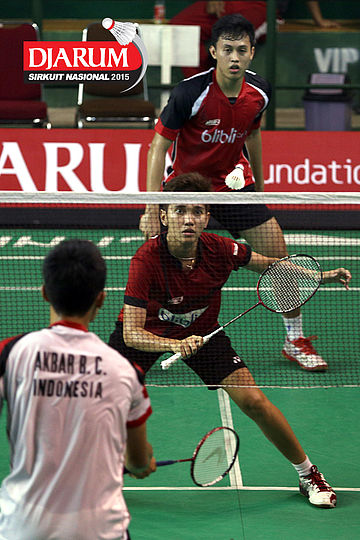 Ardy Nugroho/Lisa Ayu (Djarum Kudus) menghadang serangan.