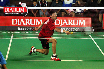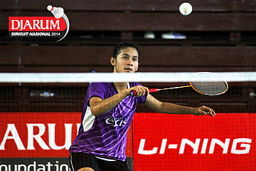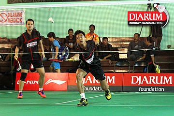 Ricky Alverino/Komala Dewi (PB Djarum) bersiap menyambut pengembalian dari M. Ilyas/Yeni (Mustika Banjar Baru)
