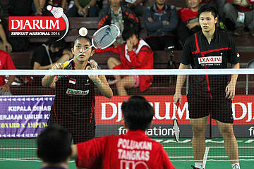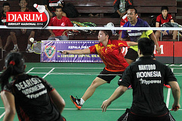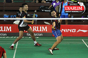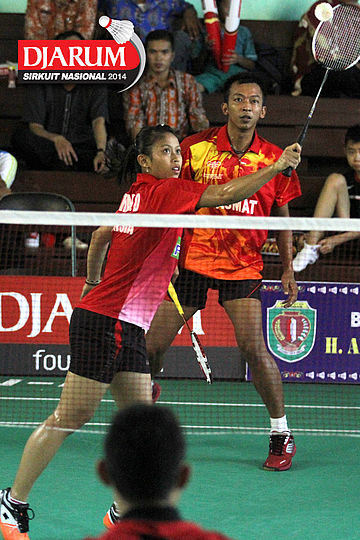 Trikus Haryanto/Natalia Poluakan (Tjakrindo Masters/Tangkas) berhasil menghadang pengembalian dari Hantoro/Deariska Putri (PB Djarum)