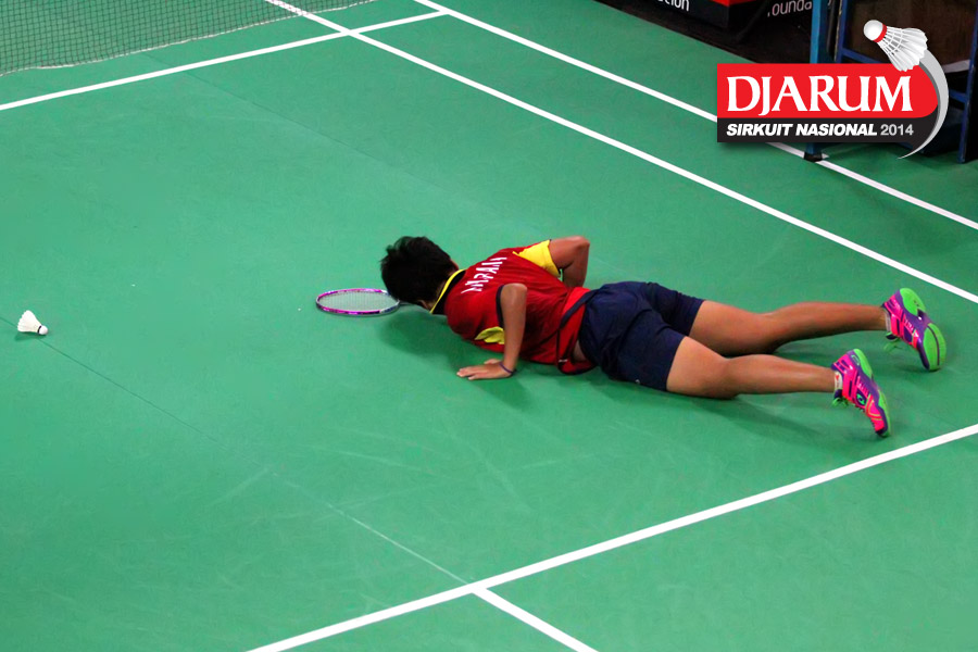Anggi Maharani (Jaya Raya Suryanaga) harus jatuh bangun meladeni serangan-serangan yang dilepaskan pasangan ganda campuran taruna PB Djarum, Tedi Supriadi/Jessica Shohan.