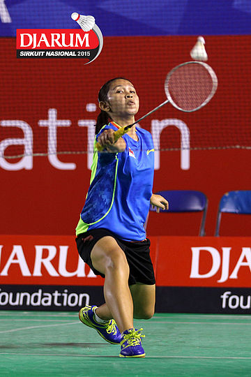Made Deya Surya Saraswati (Pelatprov Bali) mengembalikan shuttlecock