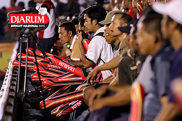 Ratusan penonton yang memenuhi GOR 17 Desember terlihat serius menyaksikan pertandingan
