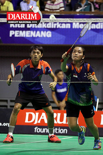 Ardy Nugroho/Lisa Ayu (Djarum Kudus) menghadang serangan
