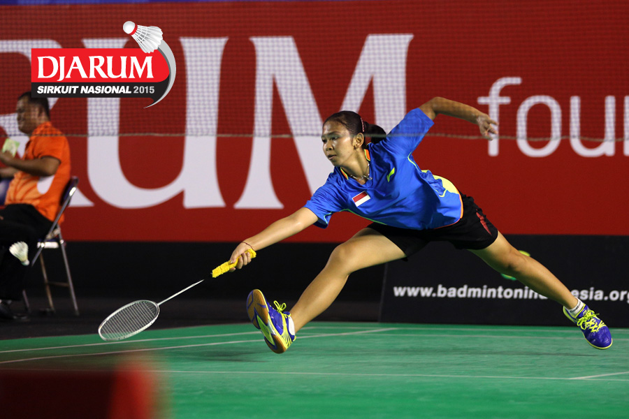 Made Deya Surya Saraswati (Pelatprov Bali) berusaha menggapai shuttlecock