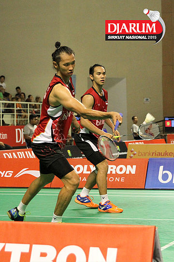 Fernando Kurniawan/Fran Kurniawan (Djarum Kudus) menyambut pengembalian.