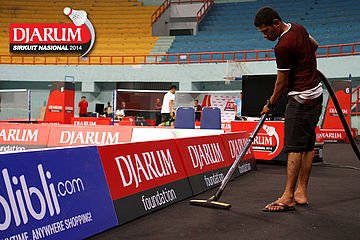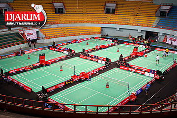 Enam lapangan siap digunakan untuk pertandingan Djarum Sirkuit Nasional 2014 di GOR Sudiang, Makassar.