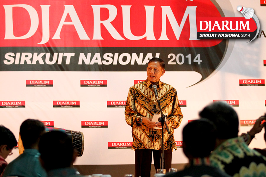 Wakil Ketua Umum I PP PBSI, Fuad Basya saat memberikan sambutannya dalam acara Welcome Dinner Djarum Sirkuit Nasional Li-Ning Sulawesi open 2014 di Rumah Jabatan Gubernur Sulawesi Selatan.