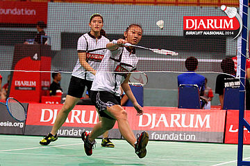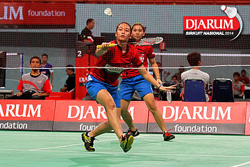 Serena Kani/Vania Arianti (PB Djarum) berhasil menggapai pengembalian dari pasangan Fitria Ayu/Miftahul Rahman (Semen Gresik).