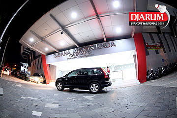 Suasana pintu masuk GOR Among Raga, Yogyakarta saat persiapan