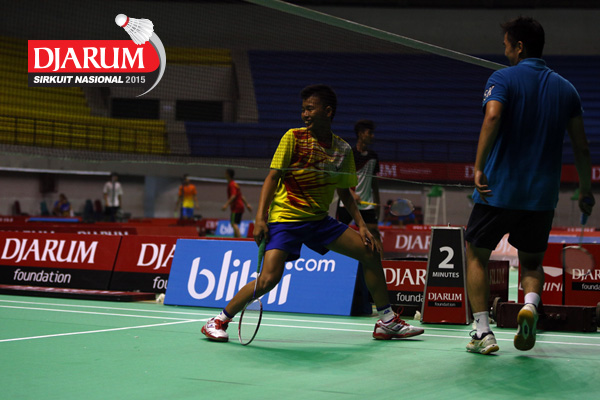 Salah satu pebulutangkis saat berlatih di GOR Among Raga, Yogyakarta
