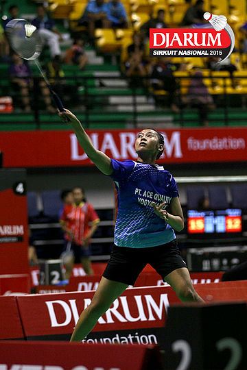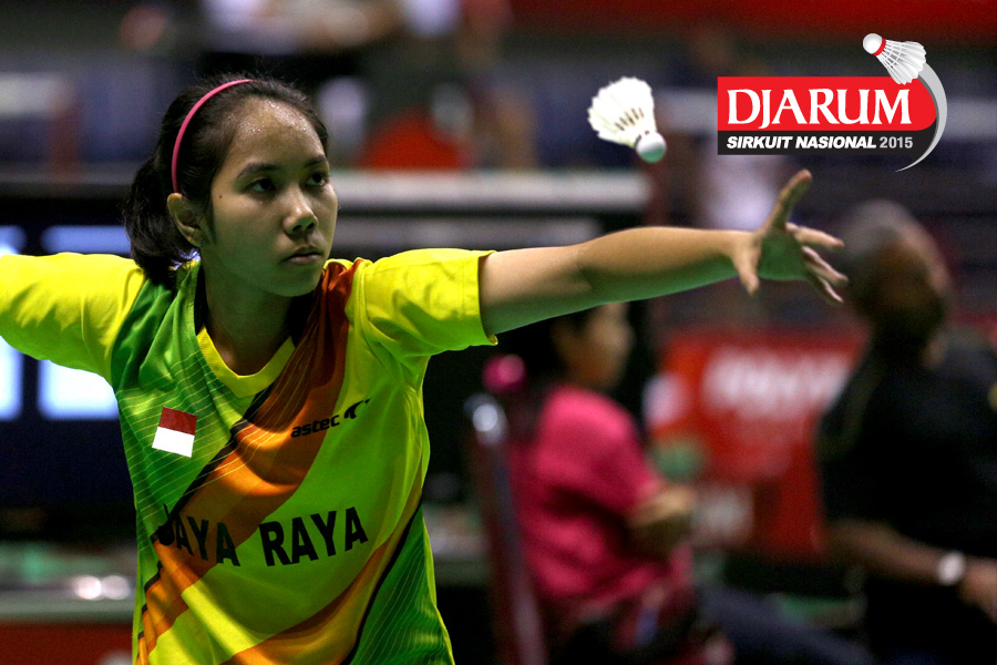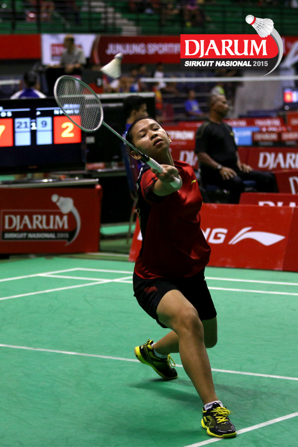 Aprodhita Charolina (PBSI DIY) melepaskan serangan.