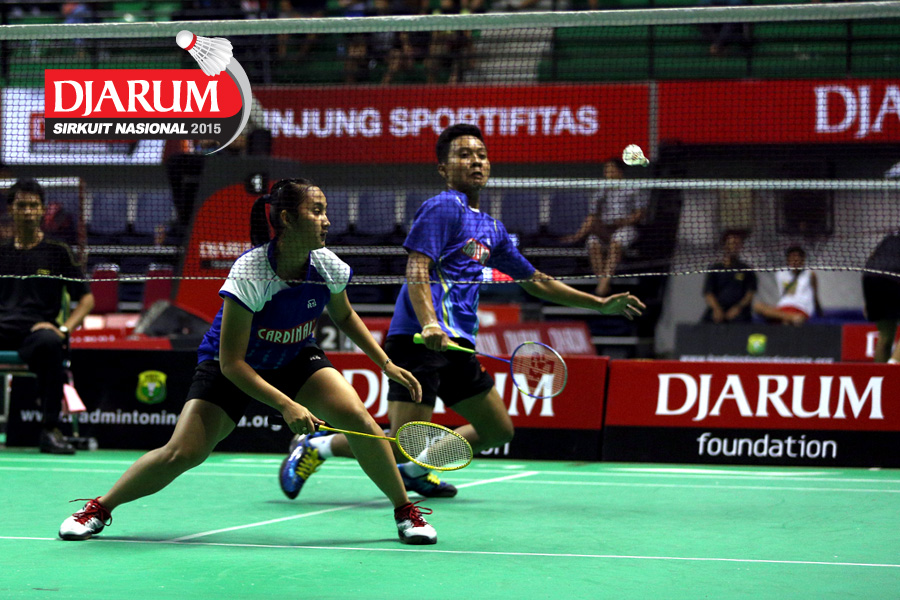 Aji Firmansyah/Bunga Fitriani (Mutiara Cardinal) menyambar pengembalian.