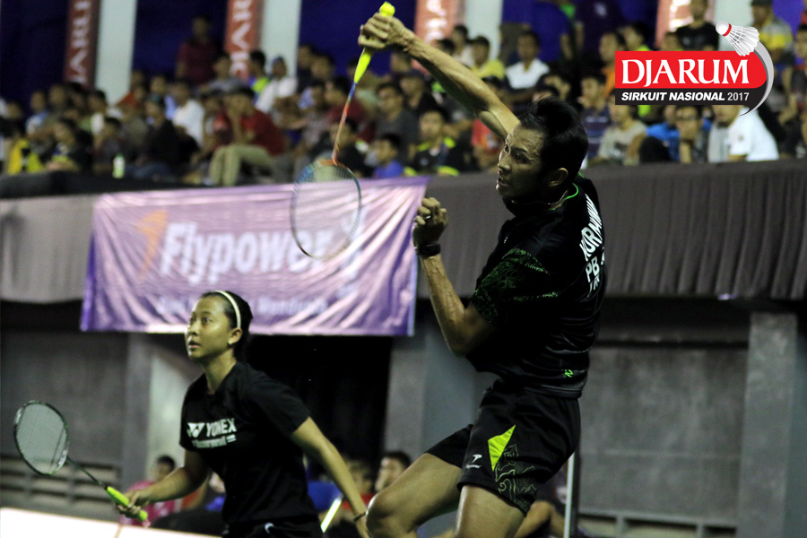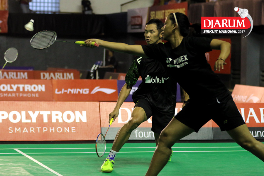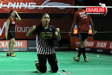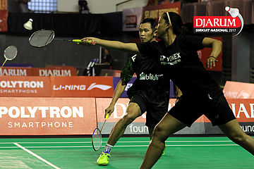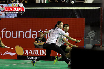 Fran Kurniawan/Richi Puspita Dili (Djarum Kudus/SGS PLN) Mengembalikan Shuttlecock