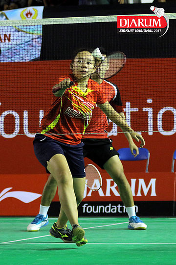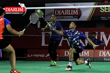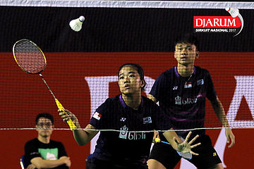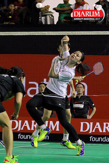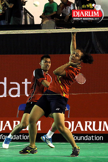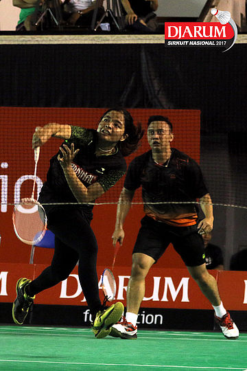 Tedi Supriadi/Keshya Nurvita Hanadia (Djarum Kudus/Berkat Abadi) Mengembalikan Shuttlecock