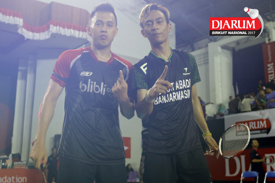 Ekspresi Kemenangan Agripina Primarahmanto Putera/Tedi Supriadi (Jaya Raya/Djarum Kudus)