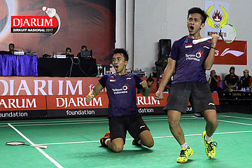 Selebrasi Kemenangan Habib Alfariz/Steven Henri Cornelis (Pusdiklat Telkom)