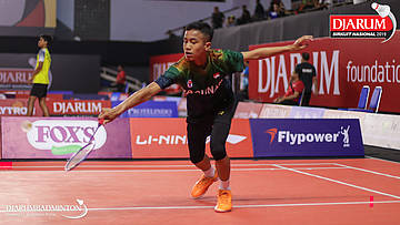 Galih Prasetyo Utomo (Nikko Steel Malang) bersiap menyambut shuttlecock